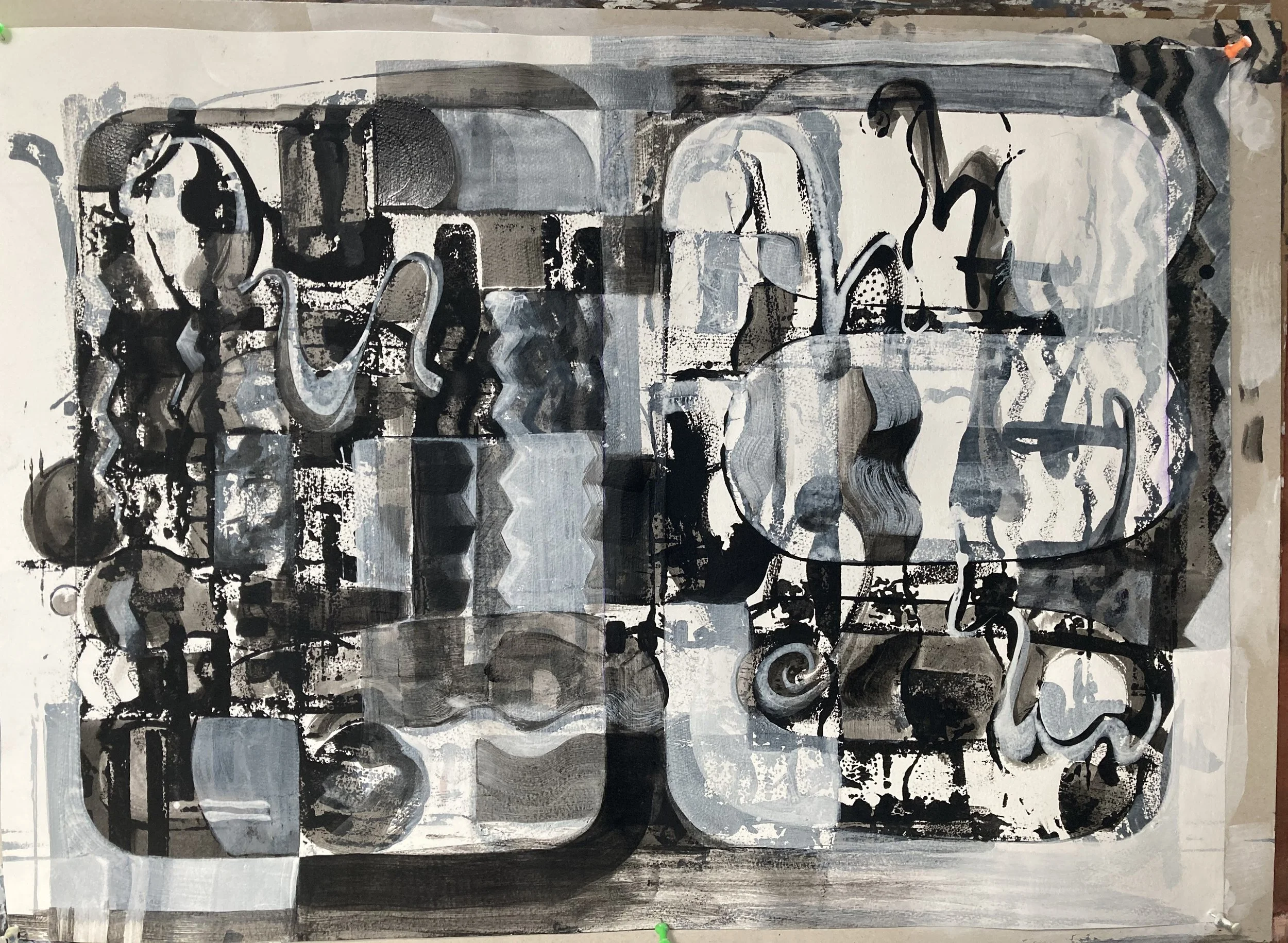 'Chambers (Monochrome)' 2021 Acrylic and ink on paper 55 x 78 cm